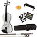 Mendini MV-White Solid Wood White Violin + Hard Case, Shoulder Rest, Bow, Rosin & Strings in Size 1/2