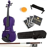 Mendini MV-Purple Solid Wood Purple Violin + Hard Case, Shoulder Rest, Bow, Rosin & Strings in Size 1/2